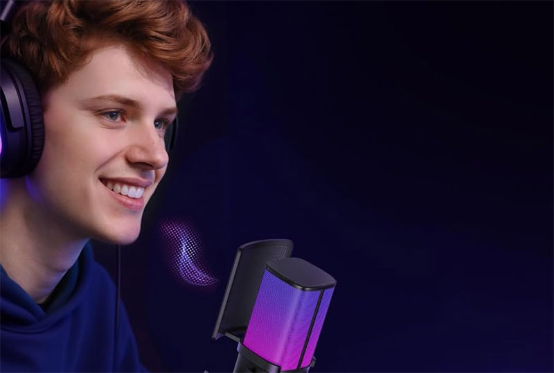 UGREEN USBコンデンサーマイク RGBライティング スタンド付き