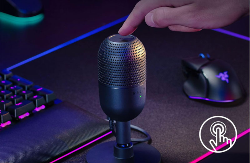 Razerらしいコンパクトなデザインで、デスクの上で全然場所を取りません。 タップ式ミュートセンサーが天面に付いていて、軽くタッチするだけで瞬時にミュートできるのが配信中にめちゃくちゃ便利です。