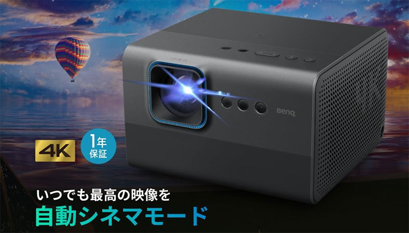 BenQ GP520は4Kで2600ANSIルーメンと明るく、賃貸の白壁にそのまま映してもしっかり見える数少ない機種です。Google TV内蔵で、スマホからミラーリングも一発。