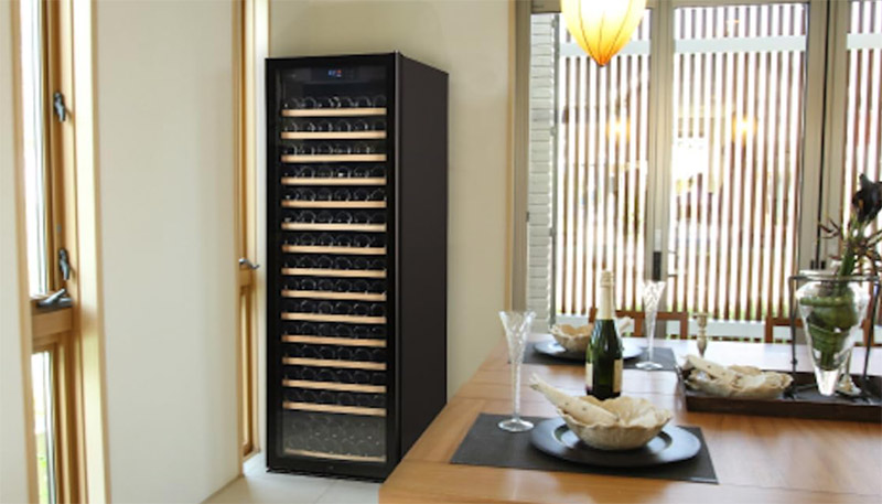 2温度管理コンプレッサー式で、155本という堂々たる収納力。プロユースの飲食店導入例もあるそうで、家庭に置いてもその安定感は体感できます。